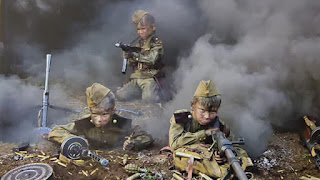 Один несознательный москвич пожаловался у себя в фейсбуке, что в одном из московских детских садов развесили "плакаты с окровавленными детьми". По его словам, посвящённый 75-летию победы в Великой Отечественной войне календарь с фото детей в образе бойцов советской армии он увидел в детсаду, куда ходят его дети, а сотрудники этого детского учреждения "предлагают сделать фотосессию в таком же стиле".